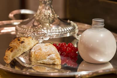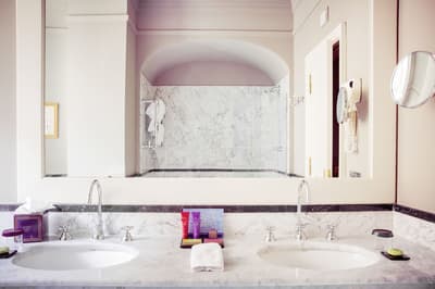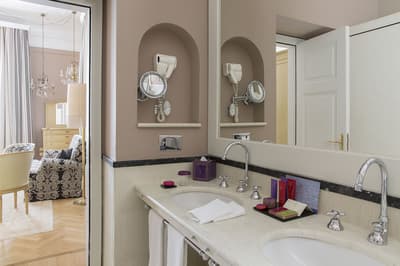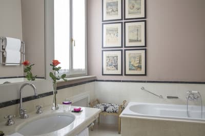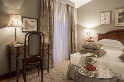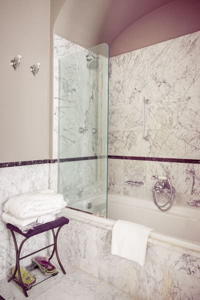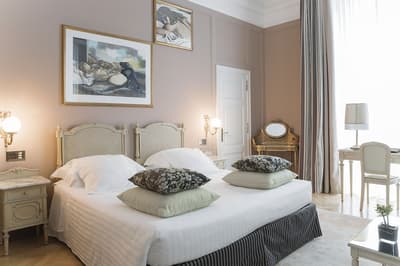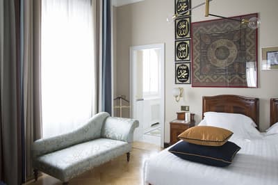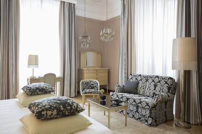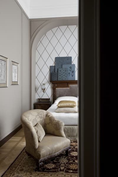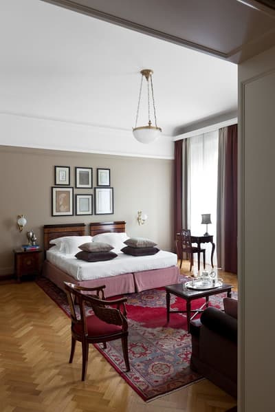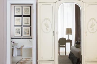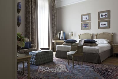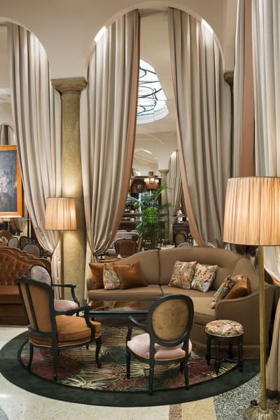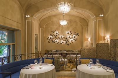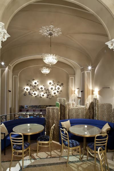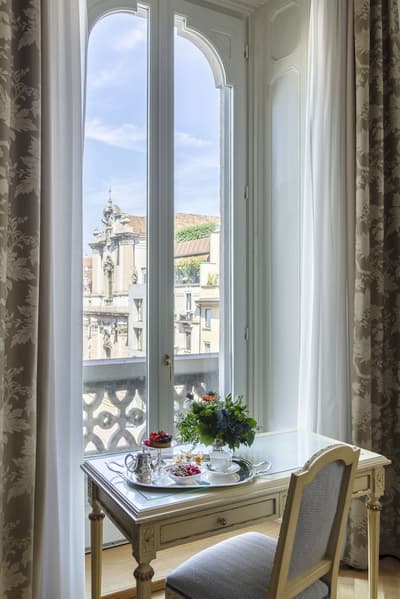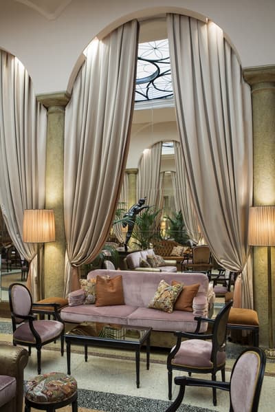 Le Grand Hotel et de Milan est un hôtel d’exception ! C’est ici que le musicien compositeur Giuseppe Verdi a composé son opéra Otello ! Eh oui, vous dormez ni plus ni moins dans son ancienne demeure du 18e siècle. Un lieu historique emblématique qui a su garder tout son charme et toute son âme. Le mobilier est splendide, les moulures et les parquets d’origine sont hallucinants, et vous avez même une véranda qui donne sur la très chic Via Montenapoleone. L’aura artistique des lieux est simplement dingue. Laissez-vous embarquer par cette magie à l’intérieur, en profitant de cette lumière incroyable qui pénètre naturellement et se reflète dans ces matières claires... Par exemple en profitant d’un café noir à l’italienne ou d’un verre de Negroni, assis confortablement dans l’un des fauteuils ocres du Gerry’s Bar. Le wine cellar est dingue, installé dans une cave absolument unique puisque logé dans les murs de défense de la cité historique, vestiges romains datant du 250 avant JC ! Vous vivez l’histoire avec une intensité folle ici ! Et puis les salles de resto sont hyper chic, et vous allez adorer le jardin d’hiver du Caruso. Car l’hôtel n’est pas un musée : on vit, on profite et on se laisse porter par les airs de la Traviata de Verdi dans cet univers à la fois luxueux et rétro. Avec une belle part d’Art déco. Un charme fou !