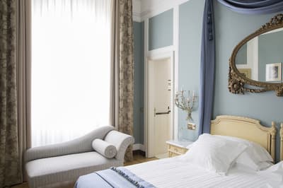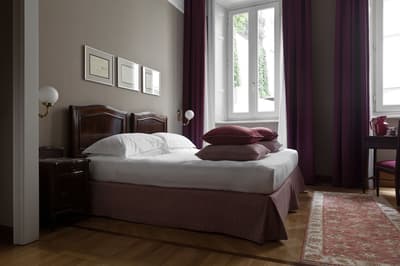 Plus spacieuse, elle est encore plus confortable. Cette belle chambre a tout ce qu’il faut pour un séjour des plus merveilleux. La grande baie vitrée profite d’une belle vue sur la ville ou sur la cour. L'atmosphère est sereine et reposante. Elle accommode un grand lit ou des lits simples et dispose de beaux fauteuils dans un coin de la pièce. Salle de bain avec douche.