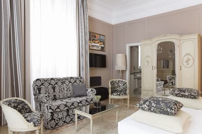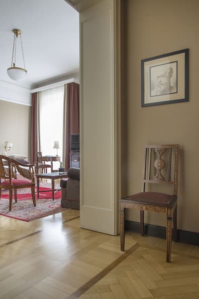 La suite junior est idéale pour un séjour merveilleux. Idéale pour une petite famille, elle est encore plus spacieuse et confortable. La grande baie vitrée profite d’une belle vue sur la ville ou sur la cour. L'atmosphère est sereine et reposante. Elle accommode un grand lit ou des lits simples et dispose d’un canapé convertible et de beaux fauteuils dans le coin salon. Salle de bain avec douche.