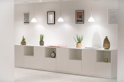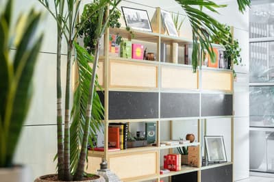 C’est le chic ! Le mélange de bois, de verre et de métal rend la décoration élégante et harmonieuse. Elle laisse pénétrer la lumière naturelle pour une pièce lumineuse et accueillante. Quelques touches de couleurs y ajoutent du peps.