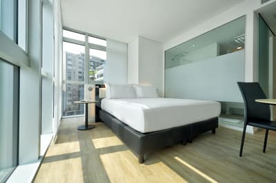 Un hôtel trendy minimaliste niché dans une tour de verre de 30 étages avec une vue spectaculaire sur Milan.