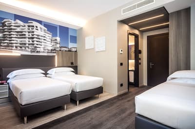 Si vous cherchez un lieu tendance et moderne pour séjourner à Milan, arrêtez-vous à l’IQ Hotel Milano ! Cet endroit est une pépite avec son look design et son confort luxe, mêlés à la touche de minimalisme qui va bien ! Des fauteuils futuristes, du verre, un gris béton ciré et du rouge vermillon contrastent avec les nuances de bleu qu’on retrouve par touche un peu partout dans l’hôtel, du comptoir du lobby aux Leds de la salle de bain. Vous allez vous sentir tout de suite à l’aise, car l’ambiance se veut décontractée et sympathique. Montez au 6e étage : voilà un sublime rooftop avec une vue géniale sur les toits de la ville ! Ici, vous pourrez vous installer en salle ou en terrasse sur ces coussins bleu céladon et siroter un cocktail signature en mangeant des tapas mexicaines. Ou encore craquer pour un burger ! Il y a même une version vegan. Et pour récupérer d’une journée à crapahuter dans les rues milanaises, offrez-vous un instant de détente au spa, avec son jacuzzi offrant une jolie vue sur la jolie gare de Milan. Canon ! A vous aussi le petit déjeuner juste délicieux ! Dans l’esprit international, mais vous aurez quand même le bonheur de manger de la mozzarella et de la ricotta fraîches avec du bacon et tout un tas d’autres fromages. Sans oublier quelques gourmandises sucrées dont les Italiens ont le secret. Il y a même du lait de soja et des produits sans gluten ! Bref, c’est le spot à retenir pour une escapade entre amis ou en couple. Et en plus, le wifi est hyper rapide.