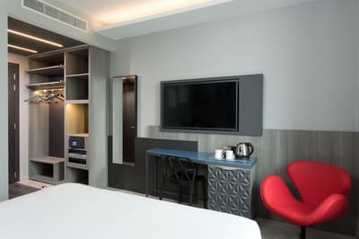 Wi-Fi, télévision, climatisation, coffre-fort, minibar, nécessaire café et thé.