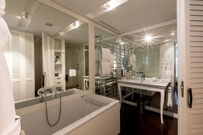 Cette belle suite a tout ce qu’il faut pour un séjour des plus agréables et confortables. Idéale pour les couples, elle baigne dans une atmosphère romantique et sereine. Les grandes fenêtres vitrées profitent d’une belle vue. Très spacieuse, elle dispose d’un salon meublé de canapés et de fauteuils. Salle de bain en marbre avec baignoire.