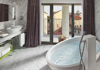 Un hôtel luxueux dans l’esprit milanais avec spa, piscine intérieure et resto 2 étoiles.