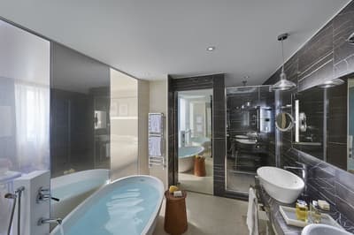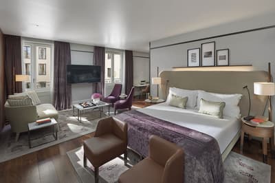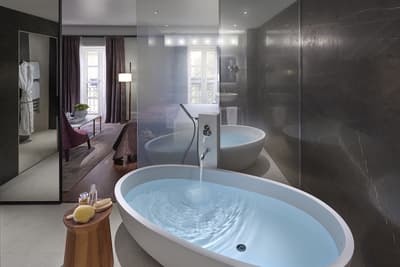 Le top ! Cette belle suite est spacieuse et vraiment confortable. Installée en plein centre-ville, c’est un havre de paix baignant dans une atmosphère sereine et reposante. D’une dimension généreuse, le balcon profite d’une vue merveilleuse. Elle accommode un grand lit et le coin salon est meublé d’un canapé et de beaux fauteuils. Salle de bain avec baignoire et douche à effet de pluie.