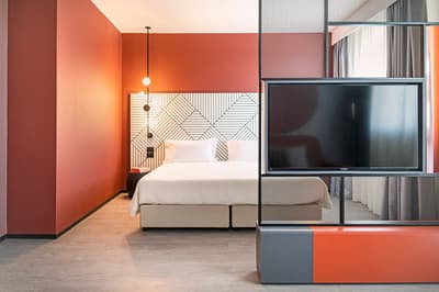 Climatisation à réglage individuel, Wifi rapide, Matelas hypoallergénique, MINIBAR avec 2 bouteilles d'eau offertes, Service café & thé, Coin salon avec table et chaises, Kit de vanité, Miroir pleine grandeur, Sèche-cheveux, Dressing, Coffre-fort, Smart TV, Téléphone.