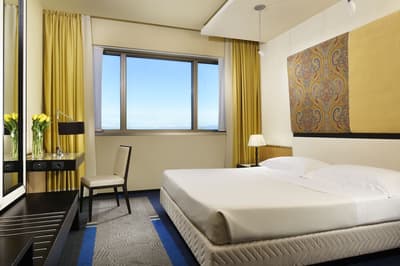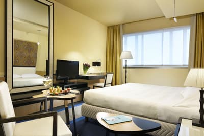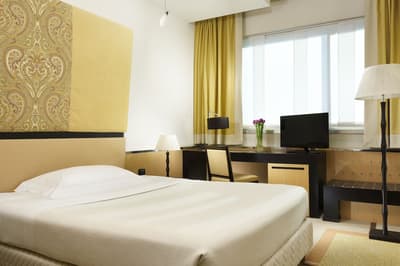 Cette chambre exécutive profite d’une salle de bains en marbre bien équipée et peut être double ou twin. Elle dispose d’un aménagement pratique et d’une belle luminosité qui imprègne toute la pièce.
