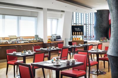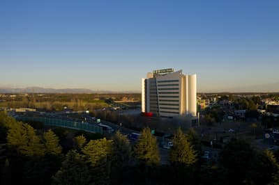 Si vous aimez l’art, le design et l’architecture, vous allez kiffer l’UNAHOTELS Malpensa ! Entièrement rénové, cet hôtel situé vers l’aéroport est une très bonne option pour les voyageurs qui doivent transiter par Milan durant leur voyage en Italie. Avec cet ovni architectural des années 2000, effet waouh garanti dès l’entrée dans le hall cathédrale, avec son immense lustre baroque et son escalier en colimaçon qui conduit au restaurant. On adore le mix des tendances qui mêlent sculptures contemporaines, canapés de designers et mobilier de bar rétro. Vraiment réussi, genre couverture de magazine déco, mais avec une vraie âme. Le petit bar du rez-de-chaussée est un lieu parfait pour prendre un cocktail le dernier soir et vous remémorer vos souvenirs de vacances. Profitez-en pour partager une story ou un Tik-tok, le cadre est parfait pour ça ! Tout ça avant de regagner votre chambre dans le même style, minimaliste et contemporain. Et l'autre truc vraiment canon dans cet hôtel, c’est cette baie vitrée immense qui inonde le lobby, la salle de déjeuner et le restaurant de lumière. Franchement, on a presque envie de booker un vol tôt le matin juste histoire de trouver une bonne excuse pour dormir à côté de l'aéroport !