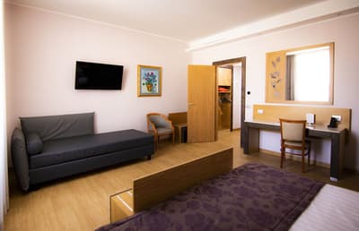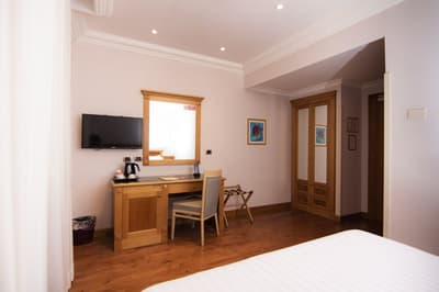Plus spacieuse, elle est encore plus confortable. Elle a tout le nécessaire pour un séjour serein et reposant. De sa grande fenêtre elle profite d’une vue reposante sur la cour intérieure. Elle accommode des lits simples et dispose d’un bureau dans un coin de la pièce. Salle de bain avec douche.