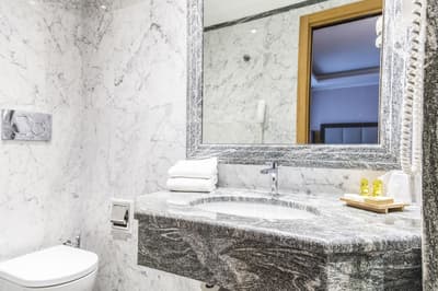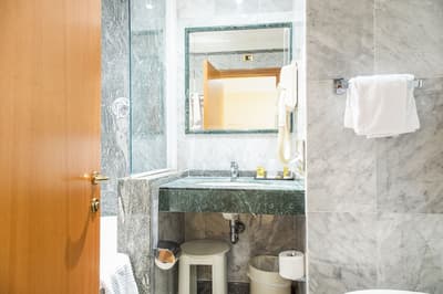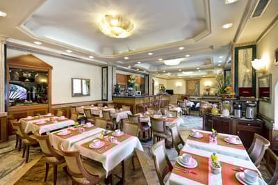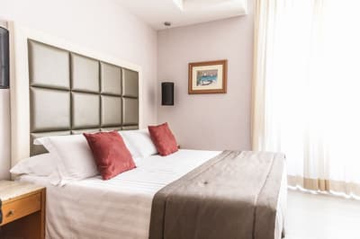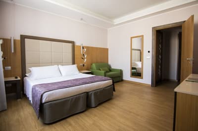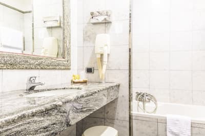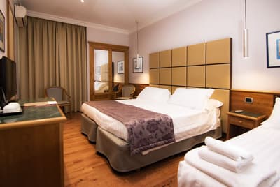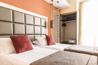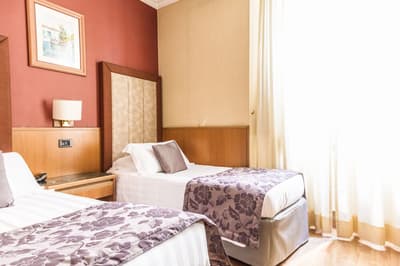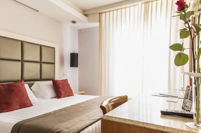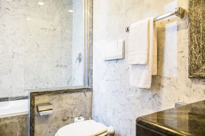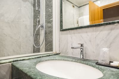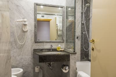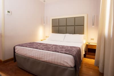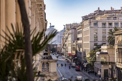 Voilà un hôtel typiquement romain ! Une fois devant ce bâtiment en pierres claires, passez la lourde porte en bois massif et sentez cette énergie si particulière de la ville. Entre chaleur humaine et aura historique, il n’y a qu’à jeter un œil par la fenêtre : vous êtes face au massif Palazzo des Expositions. Et à gauche, vous apercevez au loin le palais démesuré d’Emmanuele II. A l’intérieur de l'établissement, on retrouve le charme des hôtels d’antan, avec le bois, le fer forgé et le sol en granit brillant où se reflètent les lumières. De sublimes statues en pierres sont disposées ici et là, avec quelques peintures anciennes. Dans le bar du lobby, vous pouvez prendre le temps de boire un bon café ristretto, ou un maté pendant l’après-midi. L’ambiance est résolument rétro avec les sièges tapissés, nappes blanches, colonnes de granit et comptoir oldschool. C’est ici que vous allez profiter d’un bon petit déj' le matin ! Avec des gâteaux italiens, des fruits, des viennoiseries et de belles brioches. Dans votre chambre, vous aurez le plaisir d’avoir une vue sur cette rue centrale de Rome, avec son architecture baroque splendide. Les salles de bain de certaines chambres sont en marbre de Carrare. Et parfois on trouve au-dessus du lit un plafond en relief doté d’une fresque : difficile de faire plus italien ! Un hôtel beau, très pratique et très bien placé, d’une nostalgie agréable. Et qui, en plus, fait attention à l’environnement !