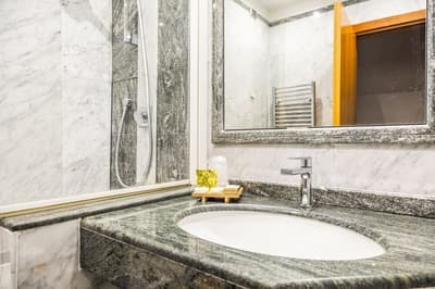 Un hôtel très bien placé, typiquement romain avec ses boiseries, marbres et granit qui orchestrent la déco. La vue sur le patrimoine alentour est très agréable !