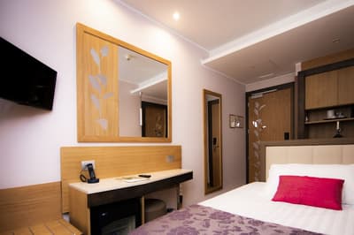 C’est du pur confort ! Plus spacieuse, elle est encore plus confortable. Elle a tout le nécessaire pour un séjour serein et reposant. De sa grande fenêtre, elle profite d’une vue reposante sur la cour intérieure. Elle accommode un grand lit et dispose d’un bureau dans un coin de la pièce. Salle de bain avec douche.