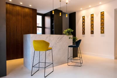 Chic et luxueuse, elle est magnifique ! Le mélange de bois, de verre et de métal rend la décoration élégante et harmonieuse. Elle laisse pénétrer la lumière naturelle pour une pièce lumineuse et accueillante. Quelques touches de couleurs y ajoutent du peps.