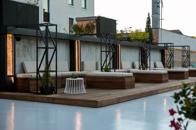 Une oasis de verdure en pleine ville ! Vous allez kiffer... Entre les rives du Tibre et le jardin Botanique de Rome, l’hôtel Horti 14 Borgo Trastevere s’est inspiré de son environnement. Son architecture cumule différentes influences : industrielle, induite par cette ancienne manufacture de bois reconvertie en hôtel, mais aussi traditionnelle, dans l’esprit du quartier Trastevere, avec une cour pavée et paysagée. Pour accéder aux 17 chambres de l’Horti 14 Borgo Trastevere, vous passez par la cour intérieure, en rez-de-jardin. Des plantes vous attendent devant chacune d’elles. Le toit a été aménagé en jardin-terrasse pour accueillir un bar-resto, Le Legnameria — ce qui veut dire "travail du bois" en italien. Et la déco des chambres elle-même rend hommage à l’ancienne activité du lieu, avec du mobilier et des cloisons en bois claires. Pour accentuer son atmosphère naturelle, entre bois et végétation, l'Horti 14 Borgo Trastevere a aussi fait appel à un artiste italien, Lucamaleonte, dont le travail incarne la nature, les plantes et les animaux. Partout dans l’hôtel, y compris sur la terrasse, vous pouvez donc admirer des œuvres représentant des scènes végétales. Bref, un véritable refuge verdoyant, rehaussé par le jardin botanique à proximité. #seressourcer