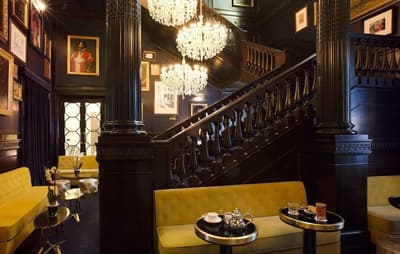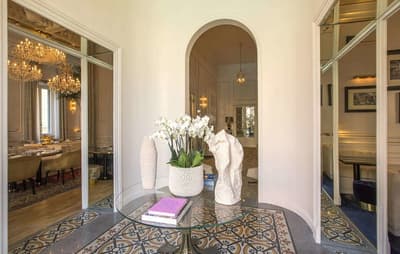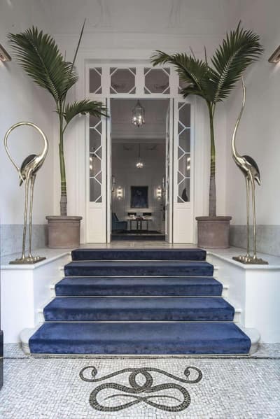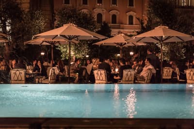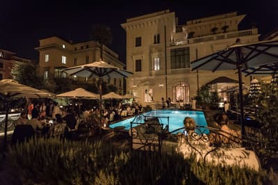 Une étonnante villa design ! Aménagée dans une authentique villa bourgeoise du XVIIIe siècle, donnant sur les rives du Tibre, le Palazzo Dama vous invite à chiller dans son jardin et à piquer une tête dans sa piscine entourée d’oliviers et de citronniers... La déco a été imaginée par l’architecte italien Antonio Girardi, qui a conservé des éléments historiques, comme la mosaïque de marbre sur le seuil de l’entrée. Le hall est tout aussi impressionnant avec sa hauteur sous plafond XXL, ses moulures et ses dorures. Et au pied de l’escalier en bois monumental sont installées les tables et les banquettes en velours du Pisco bar. Vous y prendrez peut-être le petit déjeuner ou un cocktail en soirée ! Cela confortablement installé sous des suspensions en cristal provenant du légendaire hôtel Plaza de New York, ou sous des luminaires en verre vintage, signés de la maison Italienne Venini : plutôt classe ! Côté chambres, le Palazzo Dama dispose de 29 suites avec vue sur le Tibre ou le jardin. Comble du luxe : la Garden Suite possède son entrée indépendante et son propre jardin privé. Mais le Palazzo Dama n’a pas fini de vous surprendre : une discothèque se cache dans ses sous-sols ! Le Raspoutine club vous accueille en effet tous les week-ends. Et il n’est pas exclusivement réservé aux clients de l’hôtel : l'occasion ou jamais de découvrir l’ambiance de Rome la nuit...