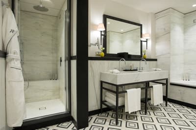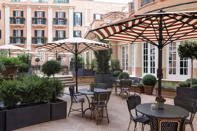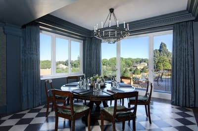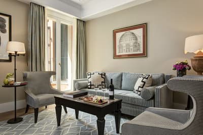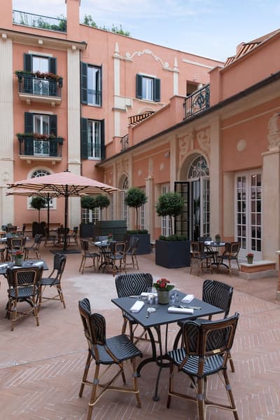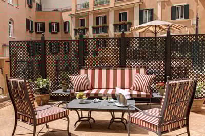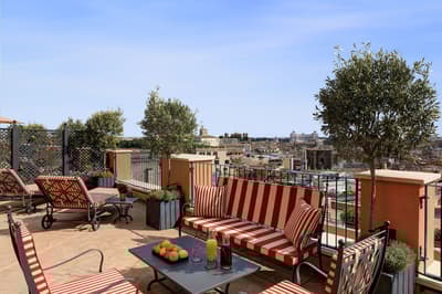Un havre de luxe et de bien-être ! Installé dans un palais historique du 18e siècle, le Rocco Forte Hotel de la Ville est tout rénové, tout beau — tout en restant fidèle au quartier de la Piazza di Spagna ! Autour de sa cour intérieure, ses trois bâtiments abritent 104 chambres et 5 suites accessibles uniquement par un ascenseur privé. Côté déco, vous y trouverez du mobilier ancien et contemporain ainsi que de nombreuses œuvres issues de collections d’art privées. La De la Ville Suite est vraiment grandiose avec sa grande terrasse aménagée, tout comme le Penthouse, qui compte 350 m2 de terrasse et des salles de bains en marbre. Mais vous n'allez pas kiffer que les suites : le De la Ville Spa est juste dingue ! 550 m2 d'espace avec sauna, hammam, piscine, massage et soins Irene Forte Skincare, sans oublier la fitness room… Et cet hôtel n’a (toujours) pas fini de vous surprendre, puisqu’une terrasse panoramique vous attend sur le rooftop. À vous les cocktails avec vue du Cielo Terrace ! Quant à la cuisine du chef étoilé Fulvio Pierangelini, elle séduira les plus gourmets d’entre vous, avec pas moins de quatre restos et bars au sein de l’établissement. De quoi profiter pleinement de votre passage à Rome !