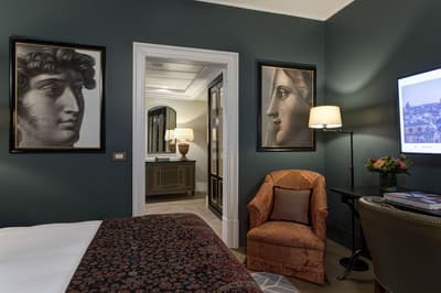 Plus spacieuse, c’est encore plus confortable. Elle a tout ce qu’il faut pour un séjour reposant et serein. En plein centre de Rome, elle profite d’une vue merveilleuse sur l’une des rues historiques ou sur la cour du complexe. Elle accommode un grand lit et dispose d’un petit coin salon meublé de beaux fauteuils dans un coin de la pièce. Salle de bain avec douche.