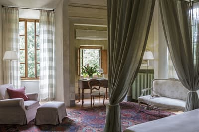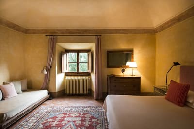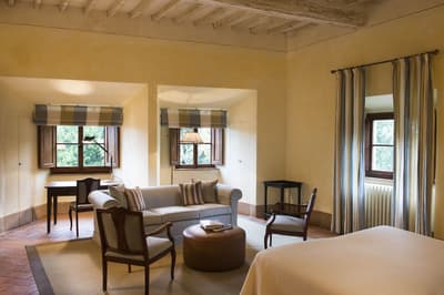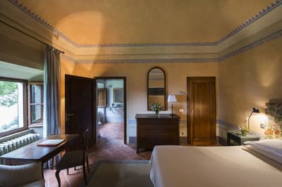 L’ensemble est dans un style de décoration contemporain et charmant et est joliment meublée avec un intérieur luxueux de style toscan et présente des détails architecturaux d'origine, des meubles anciens et des draps italiens. La chambre principale présente des motifs peints à la fresque, un lit queen à baldaquin et une salle de bains attenante avec baignoire et douche. Elle est également dotée d’un coin salon privé avec des canapés confortables, une cheminée et un piano à queue pour les moments de divertissements. Le tout dans une ambiance relaxante !