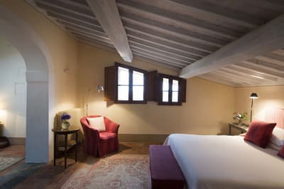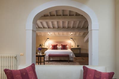 Cette belle suite offre une vue exceptionnelle sur la Toscane et est idéale pour une retraite isolée au calme. À noter que l'autre suite de la villa peut accueillir un ou deux couples et bénéficie d'une vue sur la piscine et la campagne.