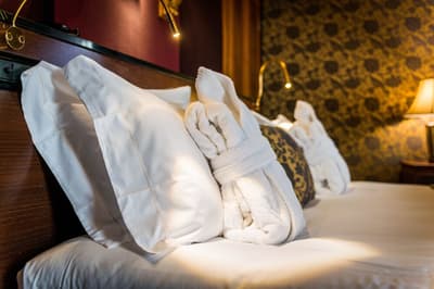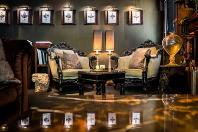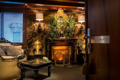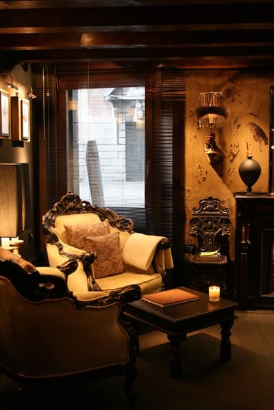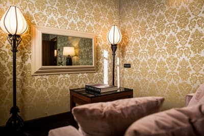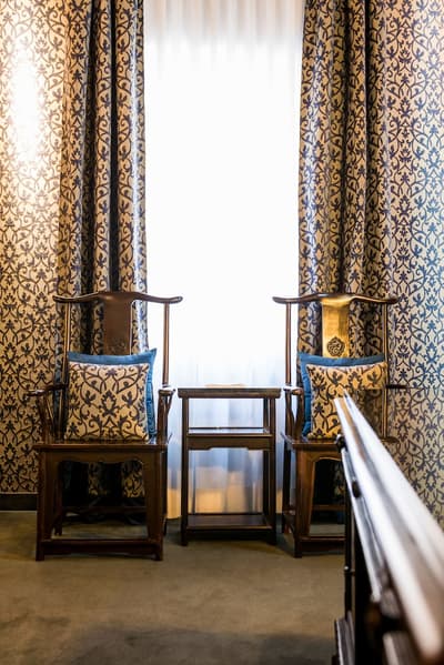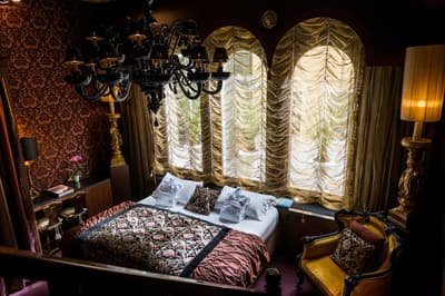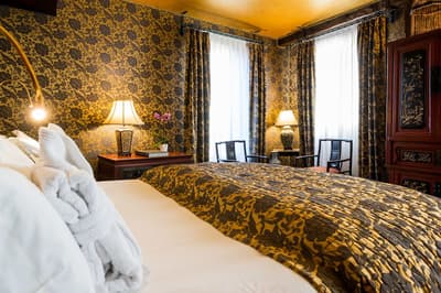 Cette belle chambre est merveilleuse ! Digne d’un film d’époque, le concept est incroyable. Agréable et confortable, c’est du pur confort ! Elle accommode un grand lit et dispose de beaux fauteuils dans un coin de la pièce pour un séjour des plus reposants. Salle de bain chic.
