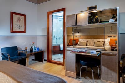 Wi-Fi, minibar, télévision, climatisation, sèche-cheveux, téléphone, coffre-fort, nécessaire thé et café.