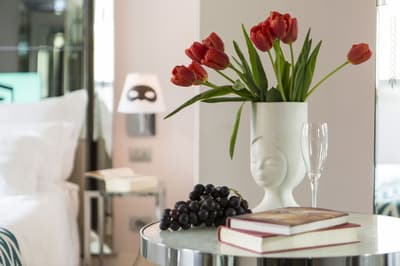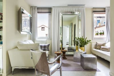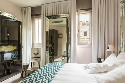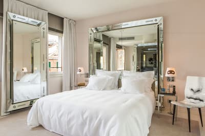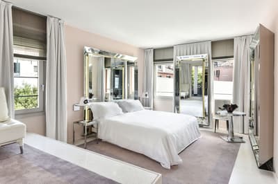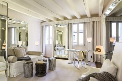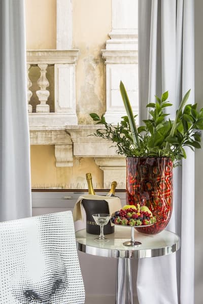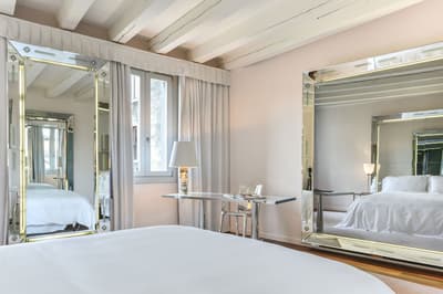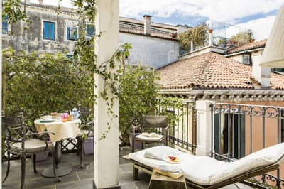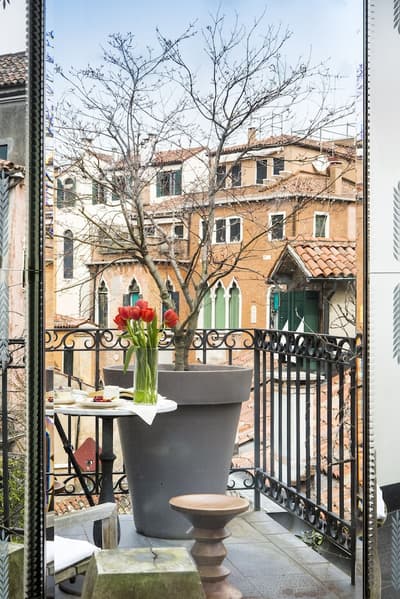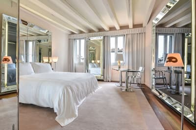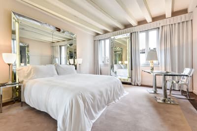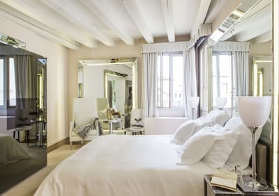Cette belle suite offre un confort absolu ! Ses grandes fenêtres profitent d’une belle vue sur les toits de Venise. Agréable et confortable, elle a tout le nécessaire pour un séjour serein. L'atmosphère est reposante. Elle accommode un grand lit et dispose de beaux fauteuils dans le coin salon. Salle de bain avec baignoire ou douche.