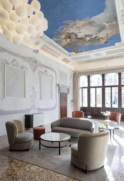 Un hôtel sublime installé dans un palais vénitien du 16e siècle, qui oscille entre Renaissance et Années 30, avec vue sur un beau canal.