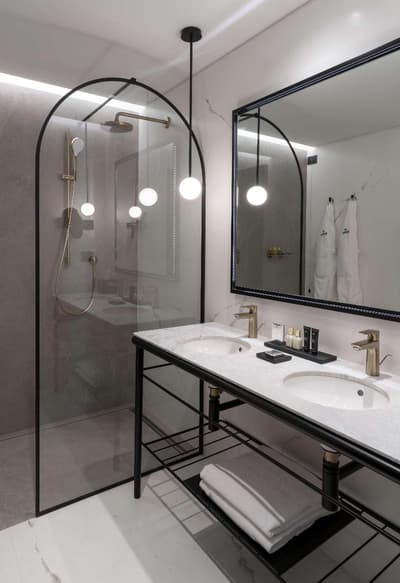 Pour des vacances en mode 100 % vénitien au bord d’un canal tranquille, posez-vous au Radisson Collection Hotel Palazzo Nani Venice ! Oui, vous avez bien lu, vous êtes dans un véritable palais vénitien et c’est peu de le dire ! Niché au-dessus du canal Cannaregio, la bâtisse date du 16e siècle et abritait auparavant une riche famille influente de la ville. On hallucine sur la rénovation qui a permis de sauvegarder des éléments du patrimoine vénitien, comme de sublimes encadrements de portes sculptés, des colonnes romaines massives et, surtout, des plafonds peints de la Renaissance italienne ! Juste magnifique ! Et on retrouve cette atmosphère élégante dans les chambres, qui offrent un confort moderne avec une petite touche Art Déco années 30, surtout sur les luminaires et les velours. Les salles de bain sont dingues avec leur bichromie noir et blanc et du marbre blanc qui court partout ! Certains logements proposent aussi une vue sublime sur le Canal. So Venise ! Sur place, vous trouvez en plus une salle de sport, mais aussi et surtout un bar à vins génial. A vous les tapas à la vénitienne, les fameuses Cicchetti Veneziani et autres réjouissances italiennes épicuriennes. A vous également les bonnes cuvées de la Botte et les saveurs locales. Vraiment top pour une escapade en amoureux !