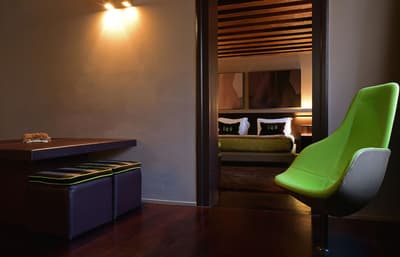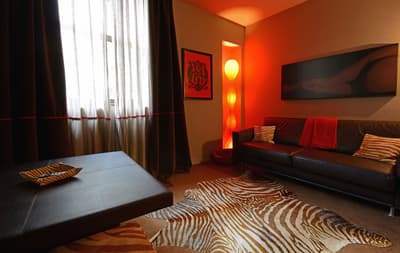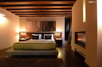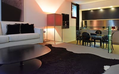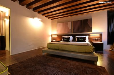 Une sensualité presque animale se dégage des appartements de la Charming House IQS ! Est-ce que ce sont les canapés en cuir ? Les immenses peaux de bêtes au sol ? L’éclairage rouge, feu ? Ou bien les grandes photos dévoilant des fragments de corps nus ? Sans doute un mélange osé de tout ça… Les 3 appartements se logent dans un palais gothique avec ponton privé, et donc vue géniale sur les canaux et ponts voisins. Leur design ultra-moderne a de quoi surprendre dans un tel environnement ! Les matériaux sont nobles, en bois brut, cuir ou verre. Les lignes sont épurées, les formes géométriques semblent dialoguer entre elles. Vous ne les trouvez pas captivantes, ces œuvres d’art contemporain d’artistes italiens qui s’exposent aux murs et sur pied ? Mais avant toute chose, vous allez adorer le côté intimiste et douillet de chacun de ces nids vénitiens. Vous n’aurez qu’une envie en arrivant, vous déchausser pour sentir la douceur des tapis et la chaleur du parquet, avant de vous lover dans un fauteuil bien enveloppant. Les lourds rideaux en velours noirs s’ouvrent et se ferment selon votre tentation du moment : regarder passer les gondoles ou une série Netflix sur votre Smart TV ? Car oui, même la technologie high-tech a envahi ce lieu historique !