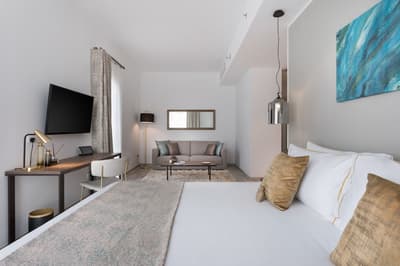 Accueillante, elle bénéficie d’une décoration contemporaine et soignée avec un beau carrelage, un mobilier et des accessoires raffinés et se complète dans des tons beiges. Dans le coin salon, vous pourrez vous détendre et recevoir vos invités. La chambre est dotée d’un lit king et la salle de bains magnifiquement aménagée dispose de toutes les commodités nécessaires. Le tout dans une ambiance cosy !