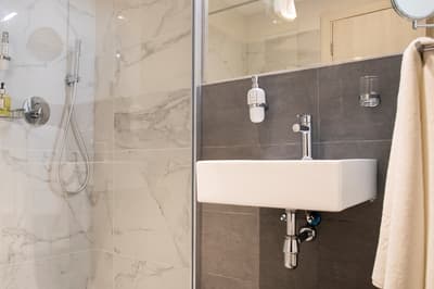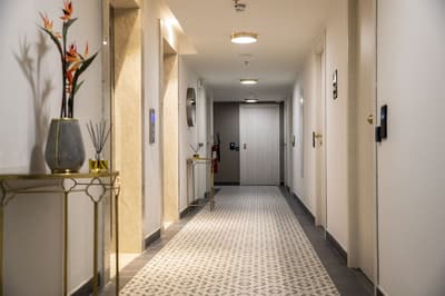 Accueillante, elle bénéficie d’une décoration contemporaine et soignée avec un beau carrelage, un mobilier et des accessoires raffinés et se complète dans des tons beiges. La chambre est dotée de deux lits king et d’un canapé-lit et la salle de bains magnifiquement aménagée comporte deux lavabos et une douche à effet de pluie. Le tout dans une ambiance cosy !