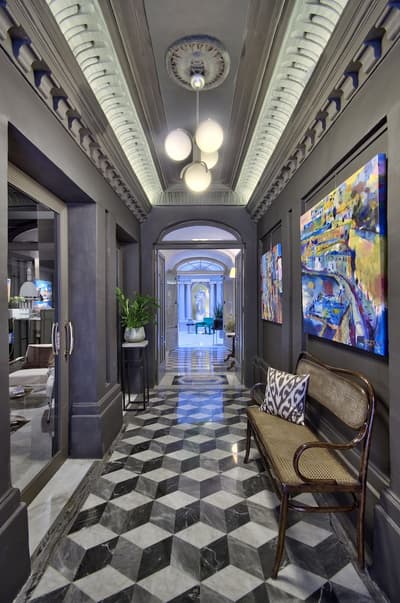 Luxueuse, elle est dotée de hauts plafonds, de carreaux de sol originaux maltais restaurés aux couleurs chaudes et se complète par un magnifique canapé Ritchie vert citron qui ajoute un style classique à la chambre. La chambre peut être convertible en lits jumeaux et la salle de bains, recouverte de mosaïque Frammenti, est équipée d’une douche, de mitigeurs GESSI et d'un sèche-serviettes TUBES. Le tout dans une atmosphère cosy !
