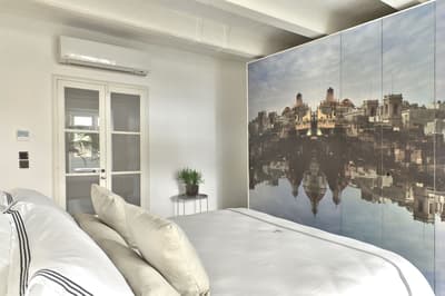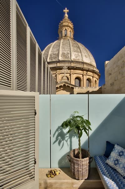 Lumineuse, elle arbore un beau carrelage, un mobilier élégant et se complète dans des tons doux. La chambre est dotée d'un lit king size avec une salle de bains attenante équipée d’une douche; un papier peint saisissant, fabriqué sur mesure par Ritty Tacsum, orne la cabine de douche et le lavabo recouverts de mosaïque Frammenti, mettant en valeur les toits à couper le souffle de La Valette. Le tout dans une atmosphère cosy !