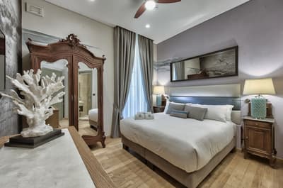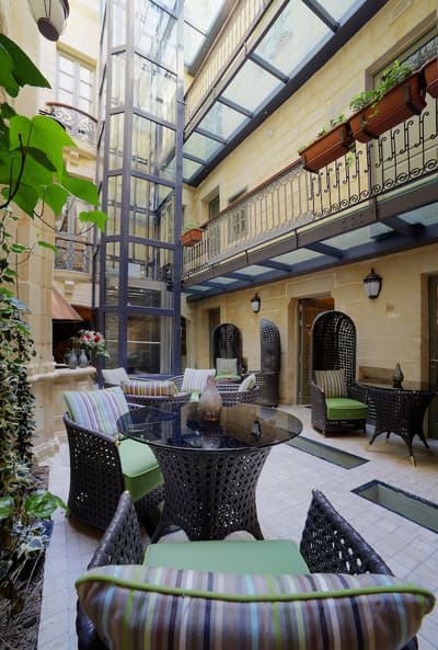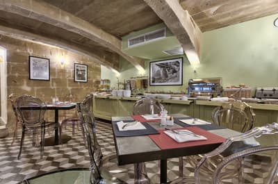 Charme et histoire ! Les parties les plus anciennes du Palazzo Consiglia remontent au XVIIe siècle. Dans cette ancienne demeure cossue, les proprios ont imaginé un hôtel élégant. Mais pas de méprise : sous ses airs de maison de bonne famille, le Palazzo Consiglia est un spot de haut confort moderne, parfaitement adapté au voyageur du XXIe siècle. Voyez plutôt ce couloir de natation posté sur son toit ou ce spa niché au cœur d’une cave aux voûtes d'ogive ! Et dans les chambres, le Palazzo Consiglia réaffirme son élégance, avec des espaces tous décorés de façon unique. Treize clefs pour treize ambiances distinctes, mais qui ne rechignent ni sur le Bluetooth des enceintes, ni sur l’épaisseur du matelas. Enfin, côté table, le Palazzo Consiglia a choisi de restreindre son offre gourmande, s’appuyant sur les nombreux restos que possède La Valette. Le menu vous offre donc le petit déjeuner et des snacks. Pour les plus voraces, la ville est à vous et surtout à portée de main ! Le bonheur de séjourner à une adresse hyper centrale...