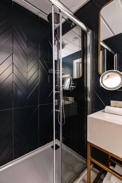 Agréable et confortable, elle a tout le nécessaire pour un séjour superbe. Elle accommode un grand lit ou des lits jumeaux et dispose d’un beau fauteuil dans le coin salon. Salle de bain chic avec douche à effet de pluie.