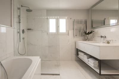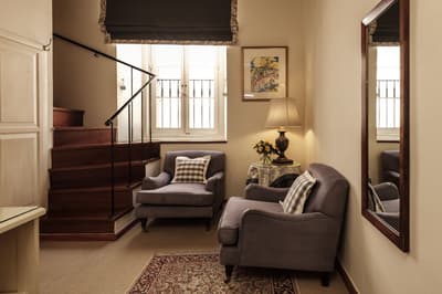 Encore plus spacieuse, elle est purement confortable. Installée en duplex, elle accommode une belle chambre à l’étage. Le salon est meublé de beaux fauteuils et profite d’une vue superbe et reposante. Salle de bain avec douche à effet de pluie.