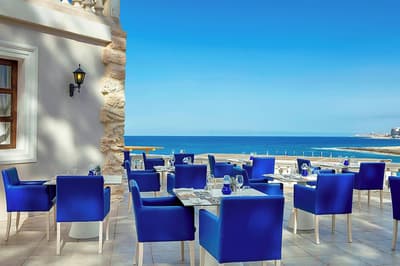 Élégante bâtisse ocre rose face la mer, le Westin Dragonara Resort joue la carte du chic méditerranéen. Confortablement lové dans l’un des canapés design du lobby (qui a fait peau neuve en 2020), vous humerez les embruns qui vous transporteront au bord de l’eau. Car la mer est omniprésente dans ce resort posé sur une presqu’île. Vous la contemplerez du balcon de votre chambre, d’une chaise longue au bord de la piscine ou sur la terrasse de l’un des restaurants. Vous aimerez revenir dans ce splendide complexe proche de La Valette, mais loin de la foule, après une journée de visites. Peut-être aurez-vous même envie de ne plus en sortir. Après un bain dans la mer bleue translucide, étendu sur un transat, vous laisserez filer les heures, avant que votre appétit ne vous rappelle à l’ordre. La Méditerranée sera votre fil conducteur pour choisir votre déjeuner. Un mérou grillé au Quadro ou des raviolis au homard au Palio ? Pas d’inquiétude, vous pourrez vous rattraper le soir, sur votre 31, prêt pour une soirée au Dragonara Casino juste en face de l’hôtel… Faites vos jeux, rien ne va plus !
