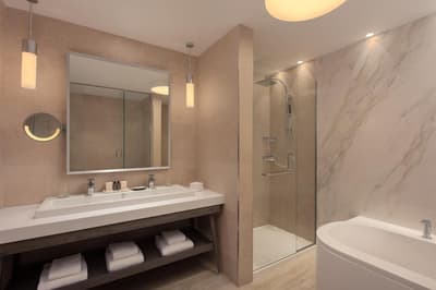Superbe ! Le balcon est complètement aménagé pour apprécier la vue sur le jardin et le complexe. Agréable et confortable, elle accommode un grand lit king et dispose d’un canapé convertible dans le coin salon. Salle de bain avec baignoire.