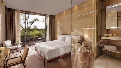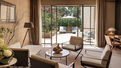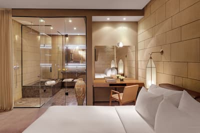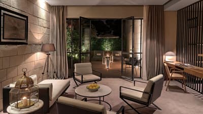 Plus spacieuse et plus luxueuse, elle bénéficie d’un style de décoration moderne et élégant et comprend un lit double avec une literie luxueuse. Elle est également dotée d'un coin salon, d'une table à manger et d'un spacieux dressing. La salle de bain en marbre est équipée d’une douche et d’une baignoire et les toilettes sont séparées. Le tout dans une ambiance accueillante et chaleureuse !