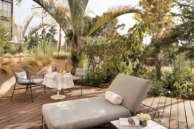 L’ensemble bénéficie un style éclectique de cultures et de textures, signé Christophe Pillet qui utilise la pierre de Taza, le plâtre sculpté, le marbre, le verre et la terre cuite pour créer un mélange de simplicité et de sophistication, de confort et d'invention. La chambre comprend un lit double, des draps d’un blanc immaculé et une couette moelleuse. La salle de bains en marbre est équipée d’une douche et dispose de somptueux produits de bain Acqua di Parma. Le tout dans une ambiance accueillante et chaleureuse !