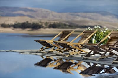 C’est l’idéale pour les couples ! Son balcon aménagé d’un style typiquement marocain offre une vue merveilleuse et apaisante. Entourée par la végétation luxuriante, elle procure intimité et baigne dans une atmosphère sereine. Elle dispose d’un vrai salon meublé de fauteuils confortables et accommode un lit King ou 2 lits doubles. Salle de bain chic avec toilettes et salle de bain séparées.