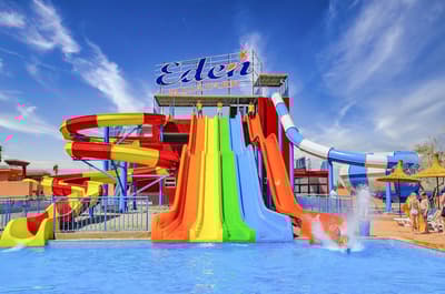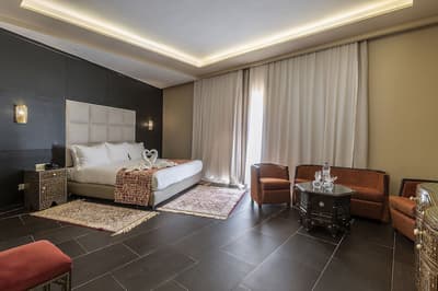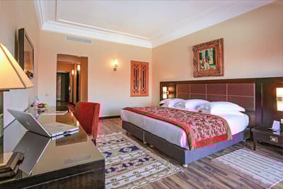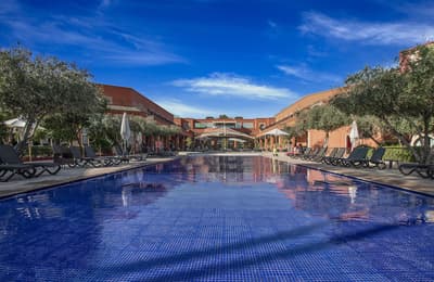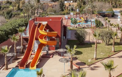 Ce complexe hôtelier doit son nom à la longue esplanade qui traverse ses jardins luxuriants au style arabo-andalou. Juste devant, le spectacle grandiose de l’Atlas. Et tout autour, des installations de catégorie premium : des suites (et uniquement des suites) réparties en six riads aux patios fleuris, deux belles piscines extérieures pour nager ou barboter, un grand club enfants avec toute la panoplie d’activités qui les rend hystériques de bonheur, un spa féerique avec deux grands hammams traditionnels et une piscine sensorielle, des bars et des terrains de sport ici et là… Vous en voulez encore ? Direction le parc aquatique mitoyen, ouvert toute l’année et partiellement chauffé en hiver, avec une quinzaine d’attractions en accès libre. C’est le vrai plus de l’hôtel et ce qui en fait une destination géniale en famille. Si vous préférez les excursions aux toboggans, alors vous serez servis. Commencez par l’incontournable tour de Marrakech en calèche, puis variez les plaisirs avec la balade à dos de dromadaire, la visite des villages berbères, la découverte des vallées et cascades des environs ou pourquoi pas, le bivouac en tente bédouine au milieu des dunes. Magique…