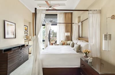 Deux en un ! On pourrait même dire 3 avec le centre de congrès mais on va s'arrêter là, et rester focus sur le côté fun des lieux. Car du fun il y en a dans ce resort chicissime family friendly ! Une grande piscine chauffée l'hiver pour faire des concours de ploufs, un kid's club avec chasse au trésor, concours de déguisements et autres danses du ventre, un centre pour ados au top pour les occuper sans qu'ils virent no life, et des suites ou villas spéciales kids. Ca vous parle moyennement, vous qui comptiez déconnecter en duo ? Avec 16 hectares de jardins, une piscine au calme pour buller loin des têtes blondes et des coins secrets à dénicher, vous allez pouvoir vous regarder les yeux dans les yeux H24 ! Y compris au Spa où on a pensé à vous chouchouter deux fois plus avec un espace duo avec jardin et baignoire extérieure. Barboter en plein air en profitant du soleil, ça au moins c'est fait ! Evidemment, à ce rythme là, vous ne vous sentez pas de vous retrouver au restaurant même avec en mode lounge tout en bougies et chuchotements sous les étoiles ? Terrasse ou jardin, la face cachée de la chambre, suite ou villa, d'incroyables espaces ni tout à fait indoor ni tout à fait outdoor vous attendent pour être full seuls au monde dans le ciel de Marrakech !