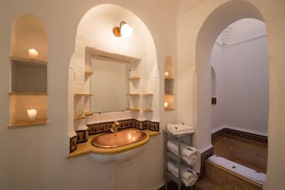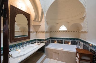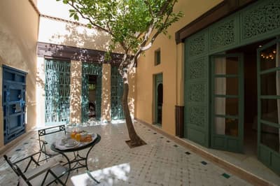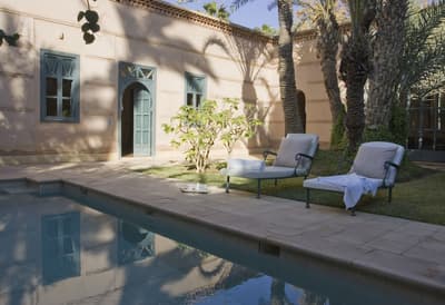 Au cœur de la palmeraie de Marrakech, une oasis en hommage à l'architecture de l'âge d'or arabo-andalouarabo-andalou.Déco cosy mix d'artisanat marocain et d'influences Art Déco, et beau parc bucolique.