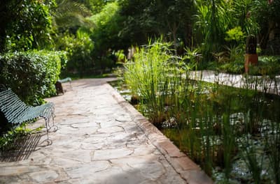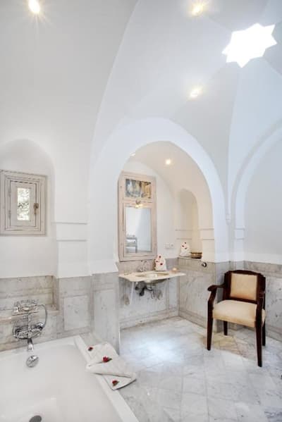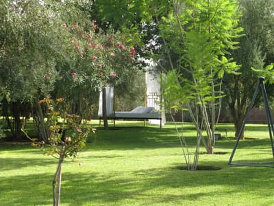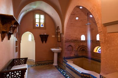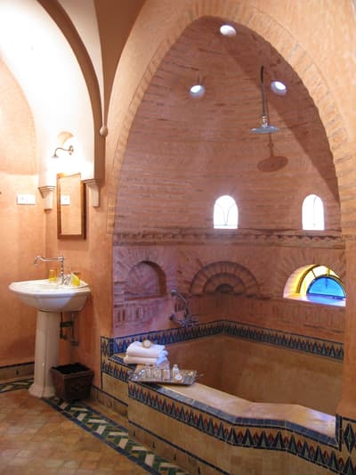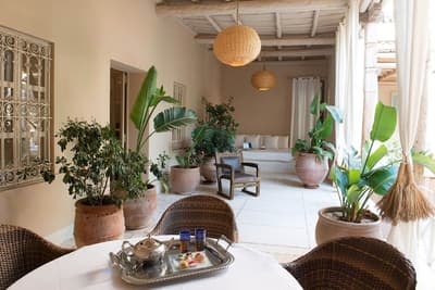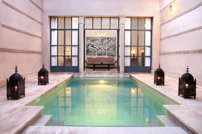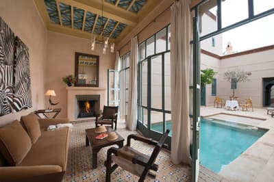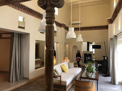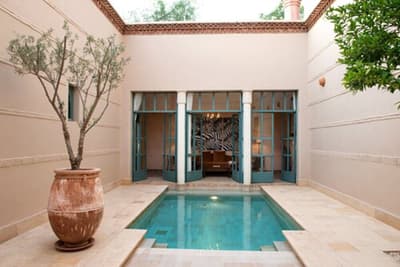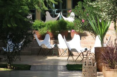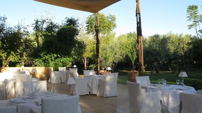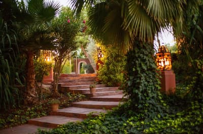 C'est le rêve d'un grand architecte amoureux de Marrakech et de l'artisanat marocain : un hôtel de charme qui revisite les codes de l'architecture arabo-andalouse et de la construction en terre. Sur une trame de maisons à patios, les 40 chambres et suites s'égrènent dans de petits bâtiments ocre enfouis dans une végétation digne d'un jardin d'Eden. Bassins, fontaines, longues allées ponctuées de buissons de jasmins et de bougainvillées, on met ses sens en éveil dans le parc de 3 hectares avant de plonger dans un grand bain de volupté au Spa, son hammam est digne des contes des 1001 nuits! La piscine s'étire dans le jardin, promesse de longueurs - elle est chauffée l'hiver en mode green- mais après un déjeuner méditerranéen sur la grande terrasse on se laisse facilement tenter par une sieste. Et si vous avez opté pour une pool suite avec jacuzzi ou piscine privés ou une suite d'exception, on parie que vous allez buller de longues heures at home ! On se réveille pour partir à la découverte des hôtes du jardin, chèvres, tortues ou paons, et du potager bio et un apéritif dans le décor colonial exotique du bar. Coriandre ou verveine, le mixologue vous a préparé des cocktails aux saveurs du Maroc! De quoi aiguiser vos papilles avant le dîner dans le cadre magique du Salammbô, tout en clins d'oeil à l'orient fantasmé du roman de Flaubert. A deux, on craque pour un diner privatif dans un coin secret du jardin, où trône une grande table miroir pour faire scintiller bougies, étoiles et yeux !