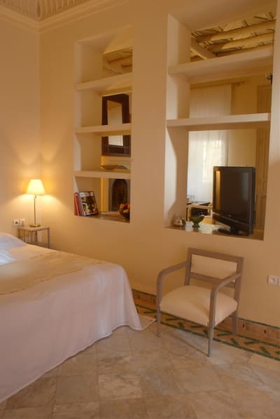 Simple et vraiment cosy, l’ensemble est léger et reposant. Elle mélange un style marocain à des éléments plus modernes. Toutes les chambres profitent d’une décoration différente. Les meubles en bois foncés rendent la pièce plus élégante. Quelques touches de rotin ajoutent de l’exotisme à l’ensemble.