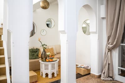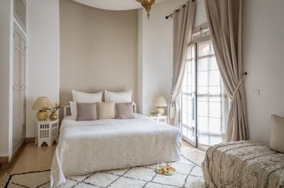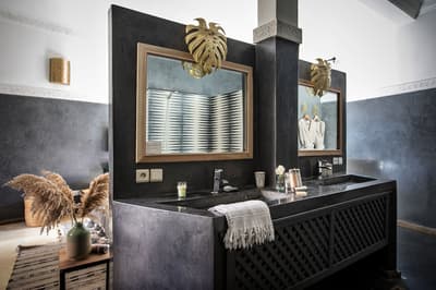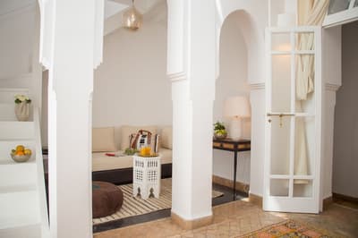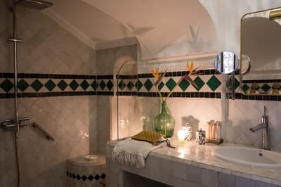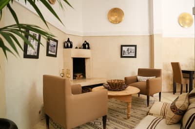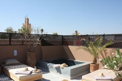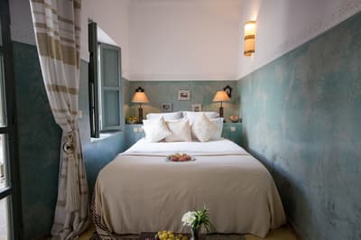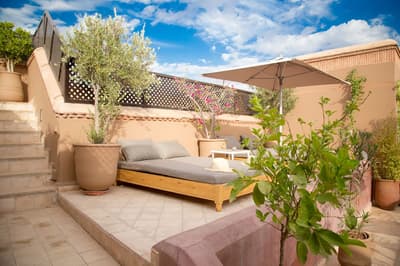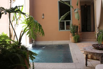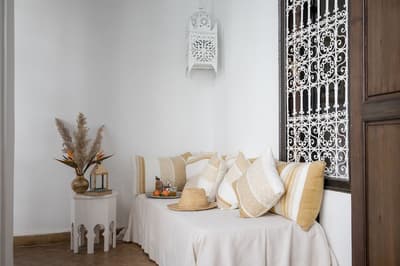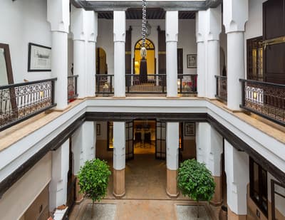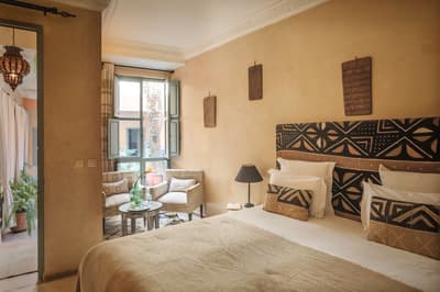 L'eau est le totem de ce beau riad qui s'étire sur deux patios, chacun doté d'une piscine. De quoi espérer vous ressourcer en douceur en plein cœur de la médina de Marrakech ! Avec 10 chambres et 5 suites, dont une suite familiale en duplex, les volumes sont ceux d'un boutique-hôtel, mais l'atmosphère comme à la maison. Le staff est aux petits soins pour les hôtes et la déco ultra-cosy dans un style ethno-chic, tout en tons doux et matières douillettes. Ce double riad regorge d'espaces intimistes pour se pelotonner au coin de feu, y compris sur l'immense rooftop qui le coiffe. Côté pile, on y prend un fastueux petit-déjeuner avant de chiller au soleil sur les beds installés près du jacuzzi, et côté face, on s'y réunit la nuit même au plus fort de l'hiver pour se relaxer sur les canapés installés près de la cheminée. Entre un hammam et un massage à l'huile d'argan au spa, vous pourrez savourer les petits plats de la cuisinière, tout est cuisiné du jour avec des produits frais du marché. Le pain est confectionné maison, de même que les cakes et gâteaux, de quoi vous faire monter l'eau à la bouche ! Ensuite, vous pourrez toujours entretenir votre forme dans la médina : le riad ouvre sur une rue commerçante dans son jus, et au-delà sur le labyrinthe des ruelles, à arpenter munis des conseils de vos hôtes — ils en connaissent toutes les bonnes adresses et les coins secrets !