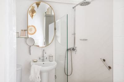 Le décor est minimaliste et moderne avec un mobilier marocain, un lit simple confortable et l’ensemble se complète dans des teintes de blancs. La salle de bains dispose de toilettes et douche, le tout dans une atmosphère sereine et chic à la fois !