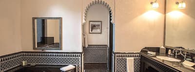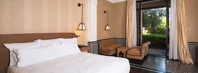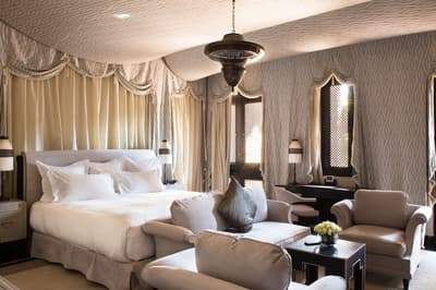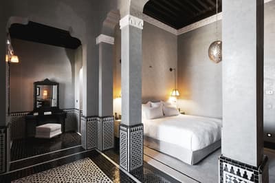 L’intérieur bénéficie d’un design élégant signé Jacques Garcia qui allie tradition et modernité; bois, cuir, stuc ou Zelliges illuminent les pièces et mettent en valeur un mobilier d'exception. La chambre comprend un très grand lit confortable et un salon spacieux. La salle de bains dispose d’une baignoire, d’une télévision et d’une douche séparée. Le tout dans une atmosphère relaxante et apaisante !